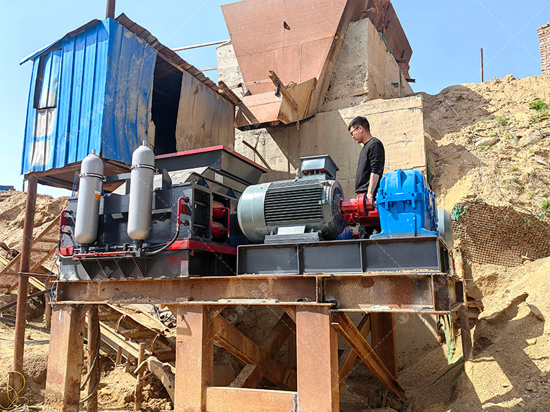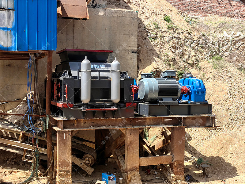 四川綿陽鵝卵石生產線現場-1210連軸對輥破碎機